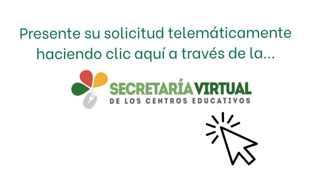 Procedimiento de admisión: presente su solicitud de forma telemática mediante este enlace: https://secretariavirtual.juntadeandalucia.es/secretariavirtual/accesoTramite/543/? (disponible entre el 1 y el 31 de marzo).